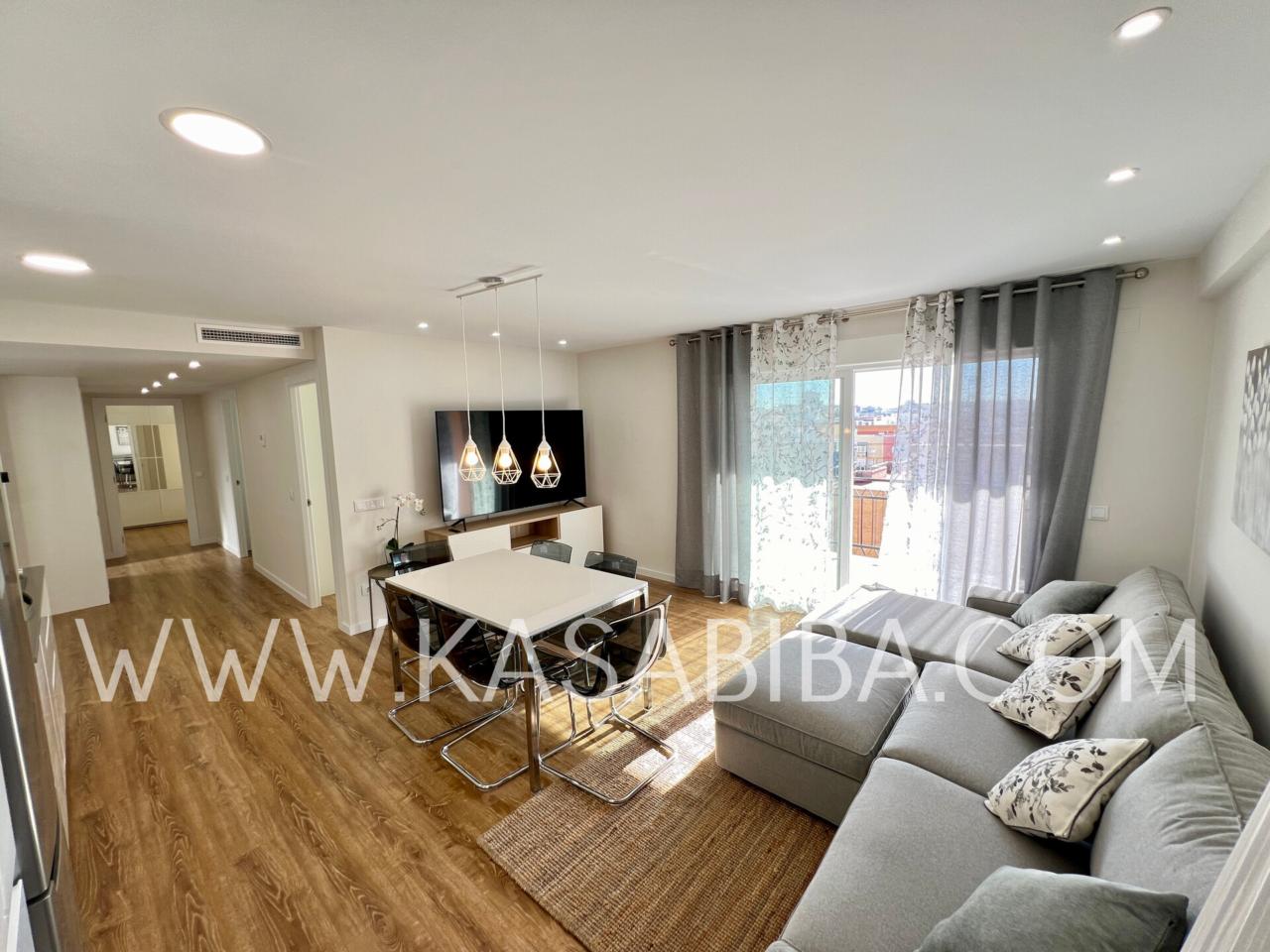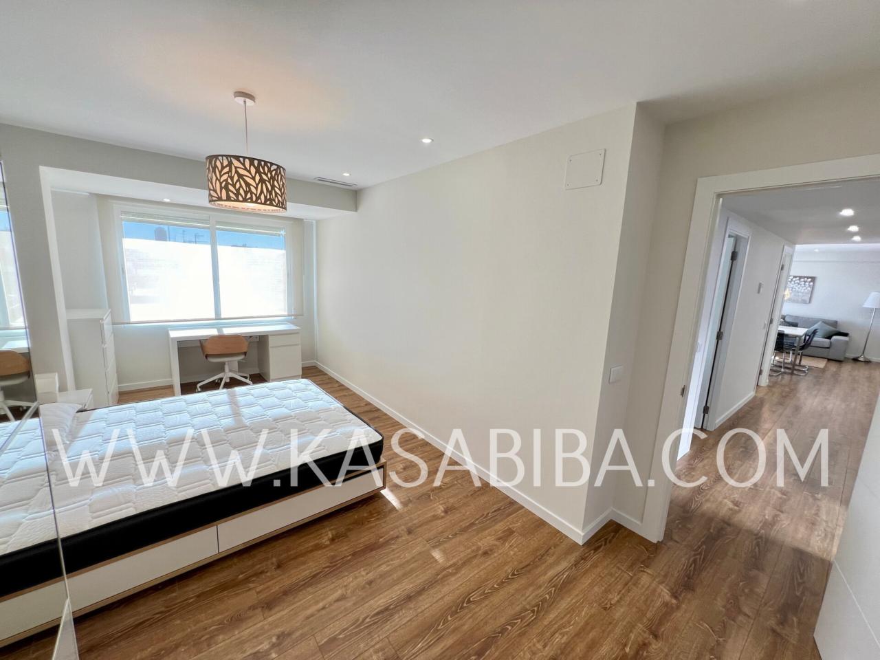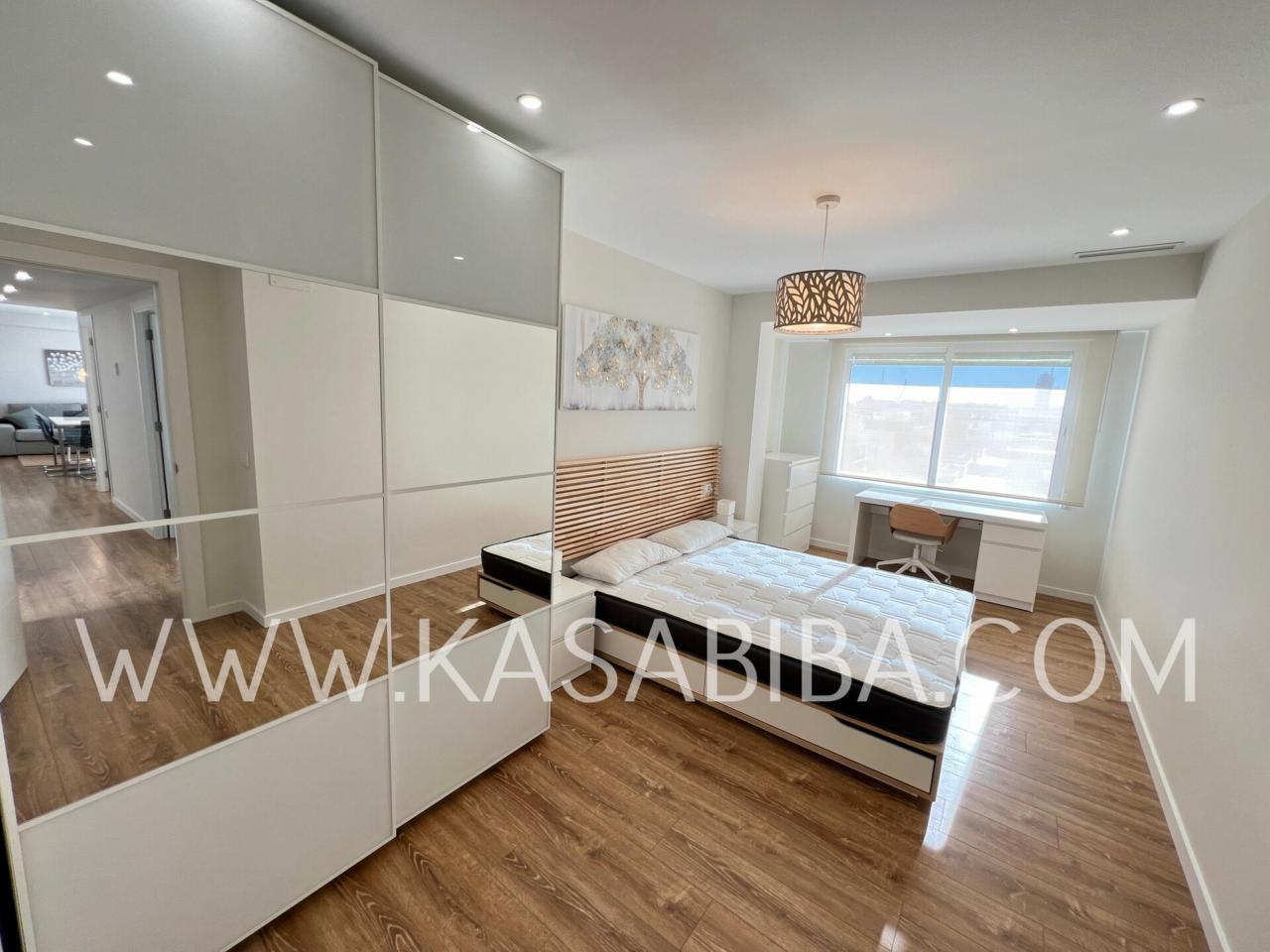 Fantástica vivienda en la calle Campoamor, con reforma integral a estrenar, con muebles y electrodomésticos también a estrenar. Cuenta con calidades de primera, es una vivienda amplia de unos 140 m2, con balcón, vistas despejadas y muy luminoso ya que se encuentra en una 9ª planta. Distribuido en amplio salón comedor con cocina abierta y perfectamente integrada, con lavavajillas, lavadora, nevera, microondas, placa de inducción, horno, etc...., Cuatro habitaciones amplias con camas dobles, armario, escritorio y dos baños completos con duchas.