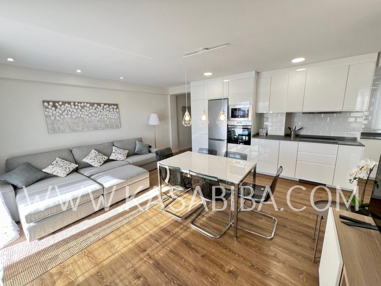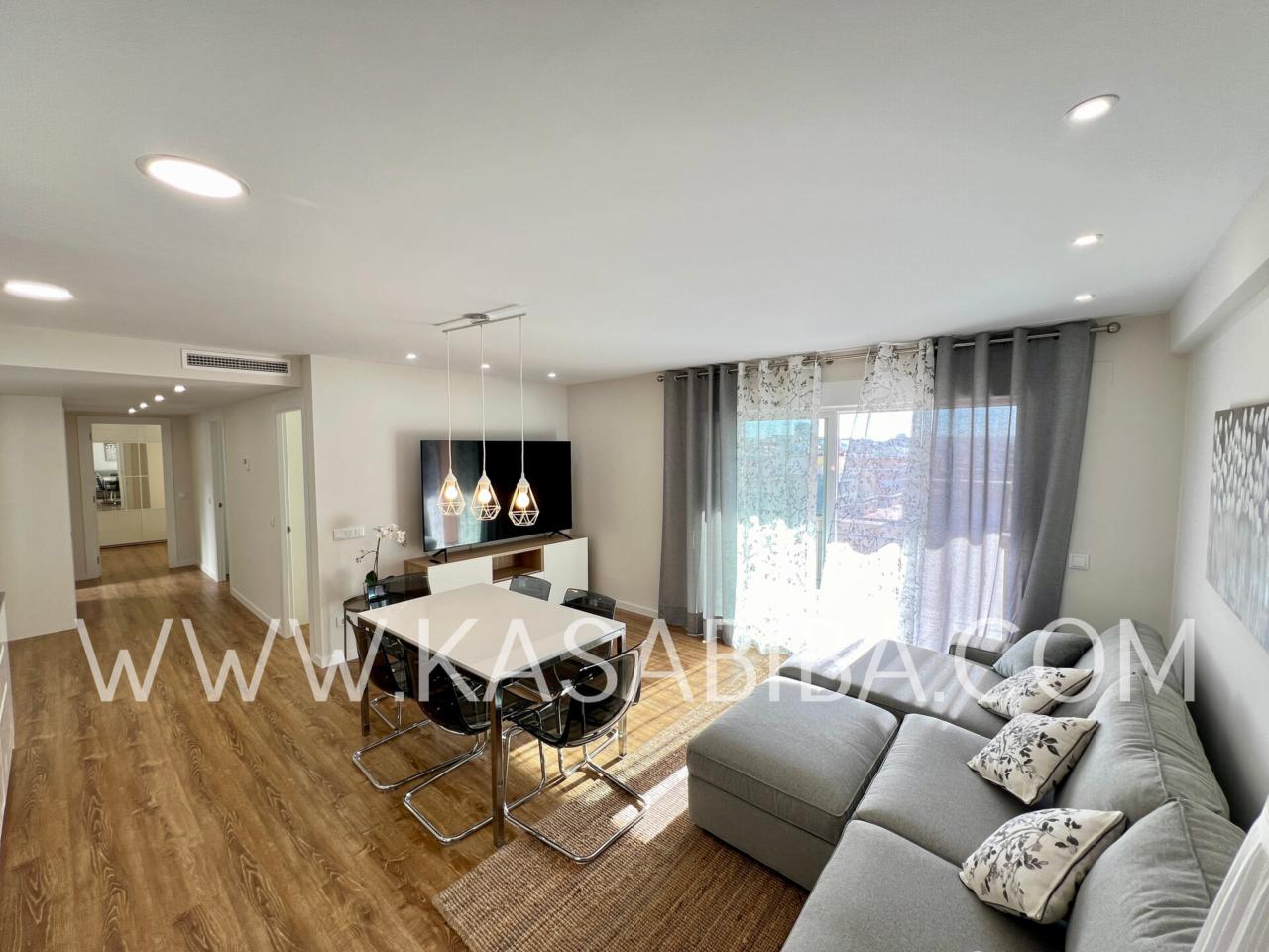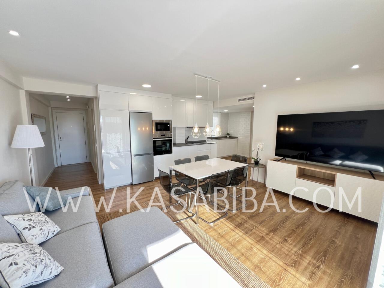 Fantástica vivienda en la calle Campoamor, con reforma integral a estrenar, con muebles y electrodomésticos también a estrenar. Cuenta con calidades de primera, es una vivienda amplia de unos 140 m2, con balcón, vistas despejadas y muy luminoso ya que se encuentra en una 9ª planta. Distribuido en amplio salón comedor con cocina abierta y perfectamente integrada, con lavavajillas, lavadora, nevera, microondas, placa de inducción, horno, etc...., Cuatro habitaciones amplias con camas dobles, armario, escritorio y dos baños completos con duchas.
