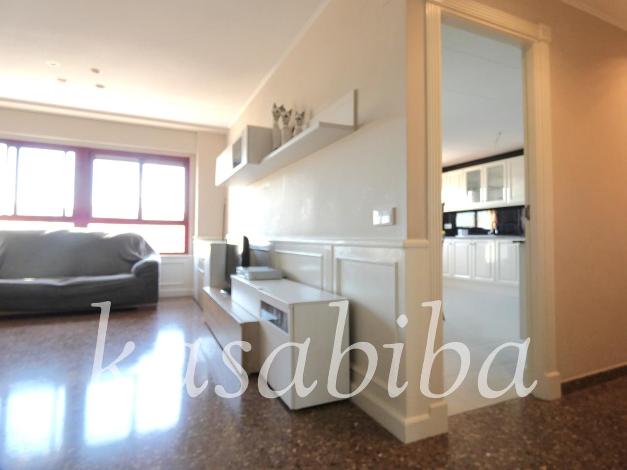 KASABIBA VENDE EN EXCLUSIVA, magnifica vivienda en un buen edificio moderno y de ladrillo caravista. La vivienda es totalmente exterior y soleada, con buena distribución. Accediendo al inmueble nos encontramos con una amplio salón comedor con mirador, a continuación una cocina espectacular, con espacio muy amplio para disfrutar, puesto que se le añadió una una habitación, además cuenta con galería - lavadero. Según avanzamos, sin apenas pasillo, nos encontramos con la zona de descanso, con tres dormitorios (dos dobles y uno individual), también dispone de dos baños (uno de ellos, incorporado en la habitación principal). La vivienda está dotada de seis armarios empotrados de gran capacidad de almacenaje.